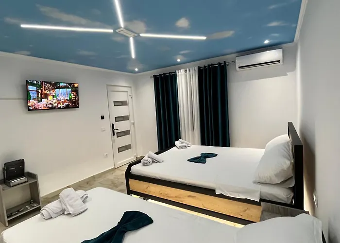 Beliggende 2 km fra Komani Lake Ferry, har Hotel Davids udsigt over bjerget.